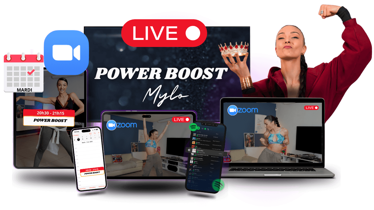 chaque mardi soir à 20h30, tu te connectes en direct sur Zoom via un lien que tu auras reçu au préalable dans ton espace dédié et dans la communauté PowerBoost.