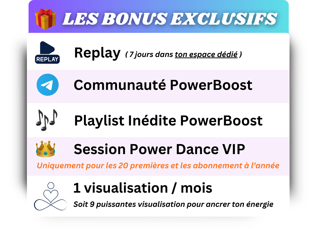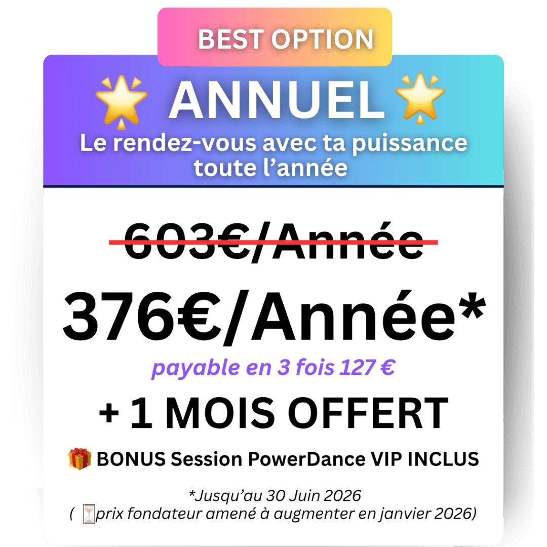 👑 Une session exclusive de PowerDance VIP. Bonus annuel ou réservés aux 20 premières.